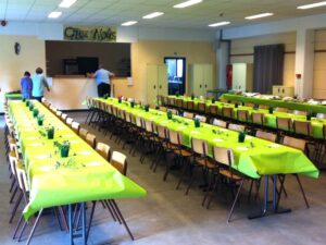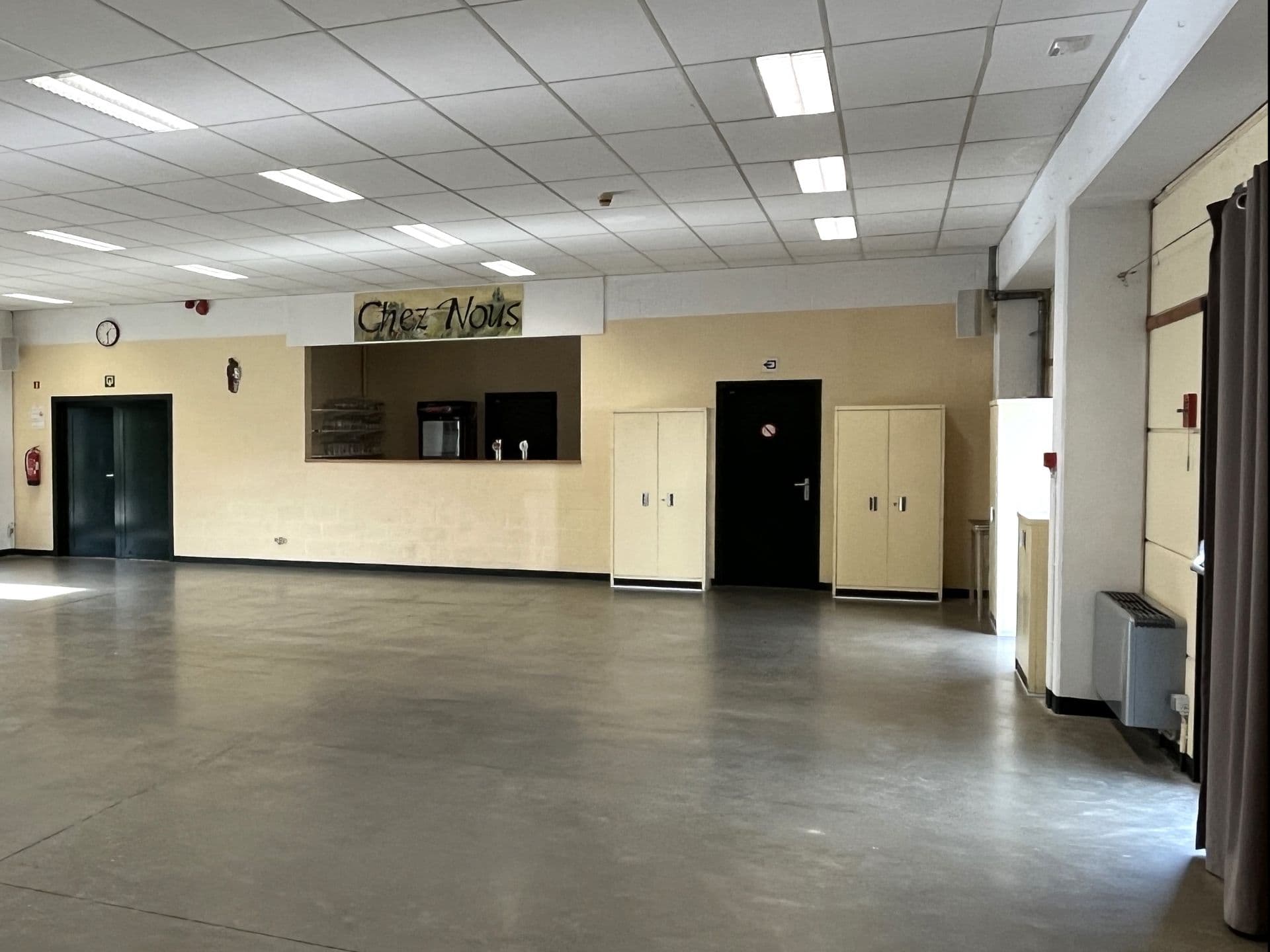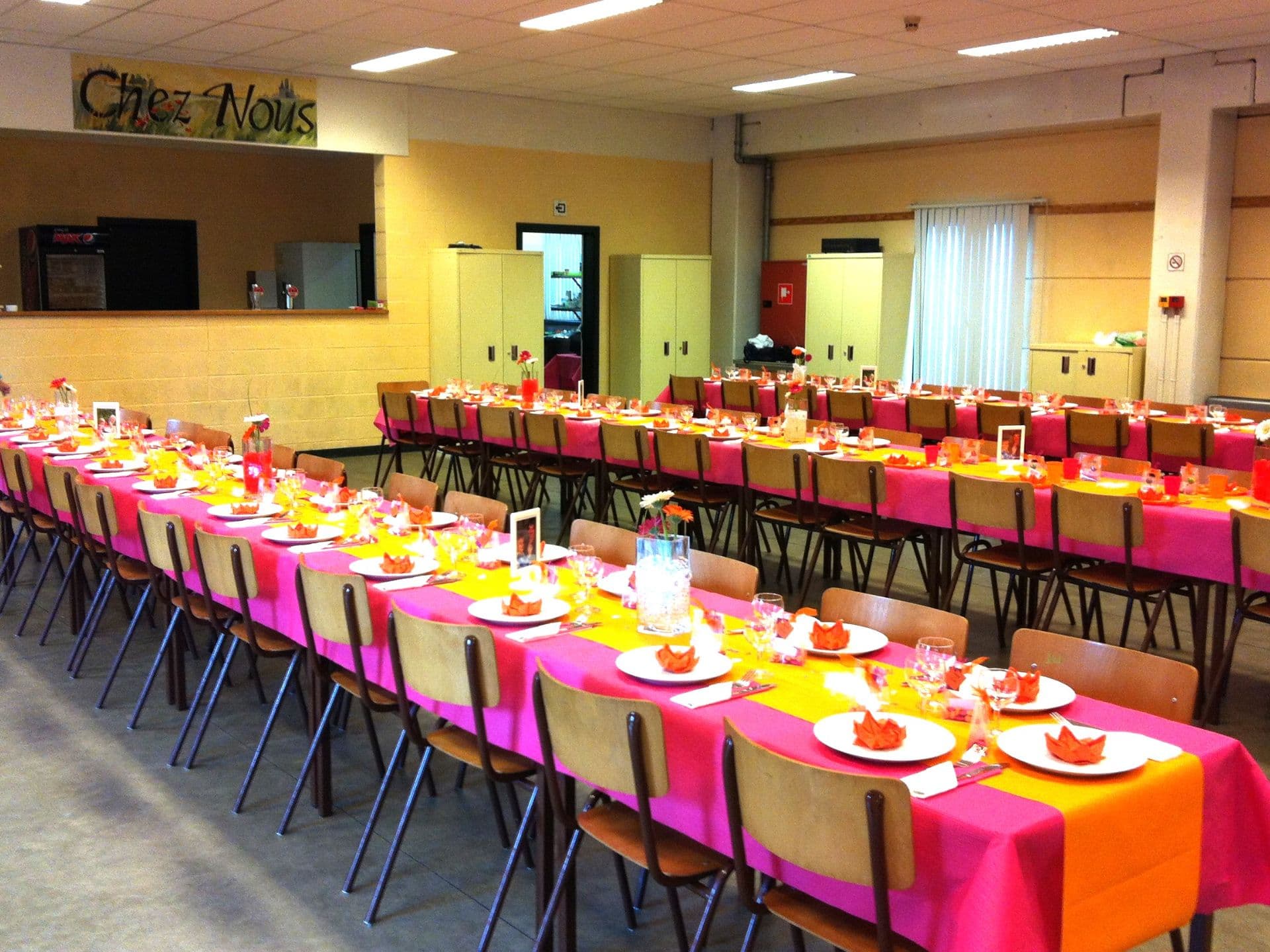 Située à Grand‑Leez, entre Gembloux et l’E411, la Salle Chez Nous est un espace de location polyvalent idéal pour vos réceptions familiales, banquets, conférences ou expositions. Elle dispose d’une grande salle de réception (jusqu’à 187 personnes) avec cuisine professionnelle, bar, matériel audio‑vidéo et terrasse avec pelouse. À l’étage, une salle de sport est également disponible pour clubs et associations.
